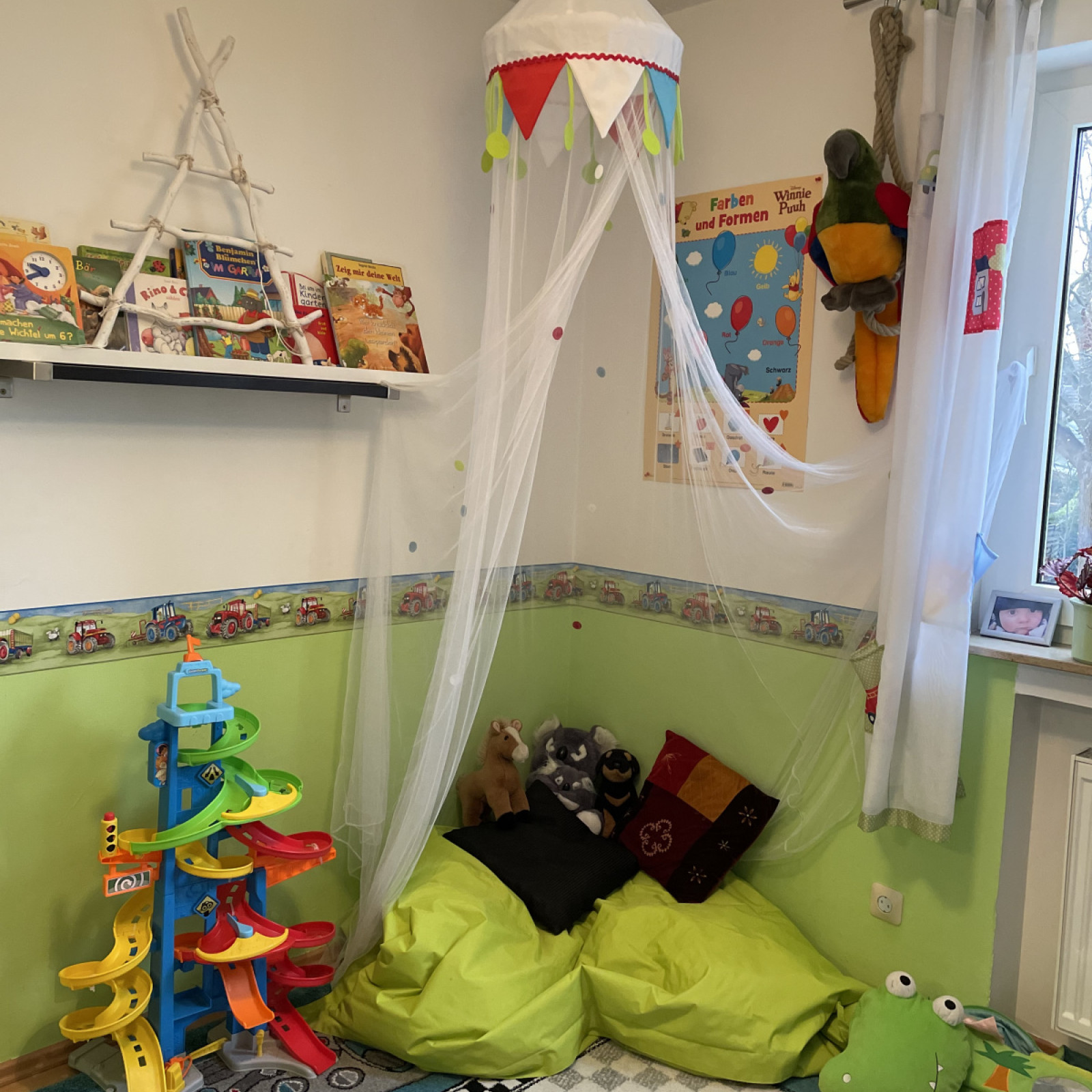 Nur wenige Gehminuten entfernt haben wir einen etwa 1500qm großen Schrebergarten. Hier bauen wir nicht nur Obst und Gemüse für unsere täglichen Mahlzeiten an, sondern bieten den Kindern auch einen 400qm großen Spielbereich.